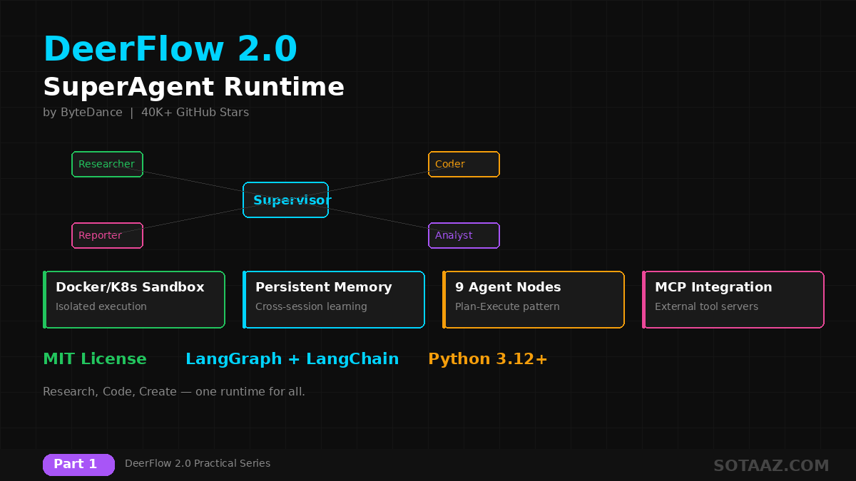 이 시리즈에서는 DeerFlow 2.0의 설치부터 프로덕션 배포까지 전 과정을 다룹니다.